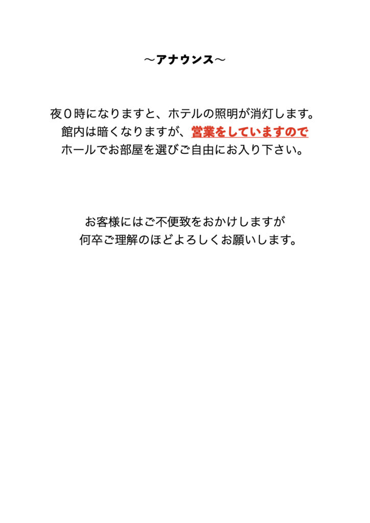 ご予約されたお客様は、0時になる前にホテルでチェックインをお済ませください。